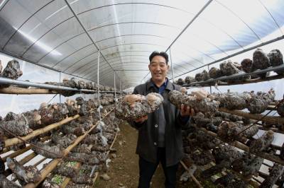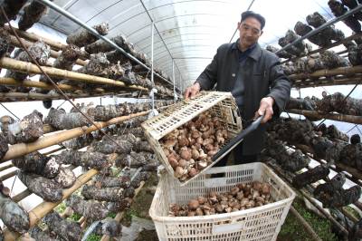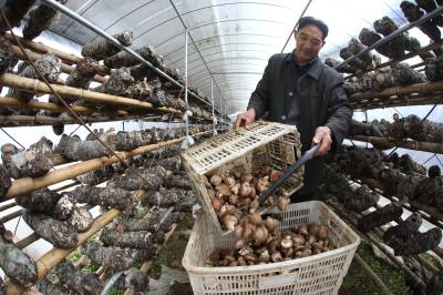 近年来,深河乡按照“园区+公司+基地+农户(贫困户)”的产业化经营思路,推进扶贫产业园区建设,让贫困户零成本投入、零风险经营、零距离就业。据了解,肖莫荣从2015年开始,在高家弯产业园区免租16个大棚种植3万筒菌棒,绿谷公司为他提供大棚、场地、菌棒和技术指导,同时鲜菇上市后可以直接卖给公司回收,每年春、秋两季采摘,年产香菇5万余斤,年纯收人超过5万元。(视界网程平 摄影)