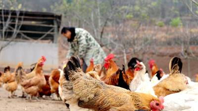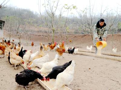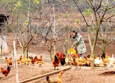 11月30日,在湖北省十堰市郧阳区安阳镇陈营村王金霞创办的“丈母娘家庭农场”里,70岁的工人王玉鹏正在喂鸡。至今,现年38的王金霞在林下养殖土鸡已有4年,每年养殖5000多只,年均收入达19万多元。她致富不忘社会责任,以人均25000元的年薪,优先吸纳5个贫困劳动力常年进场务工就业。