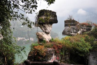 300万年前的洪荒时代,万古长江不断冲刷切割阻挡其中的巫山山脉,汹涌波涛将其劈开,夺路奔流形成了地球上最壮丽雄奇的长江三峡。在长江西陵峡畔的宜昌市夷陵区三峡人家风景区,屹立着三叠纪形成的灯影石、石令牌。