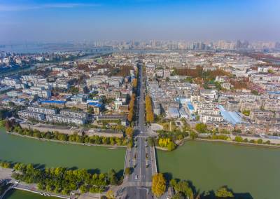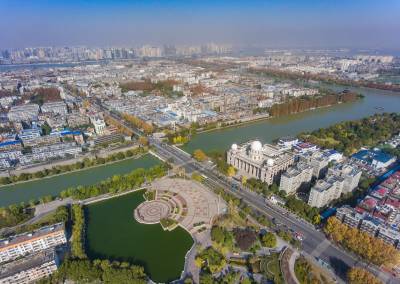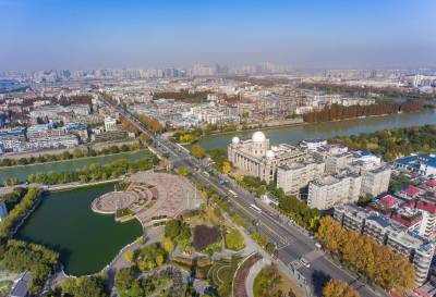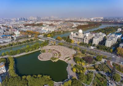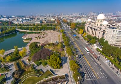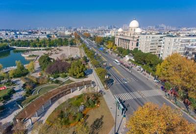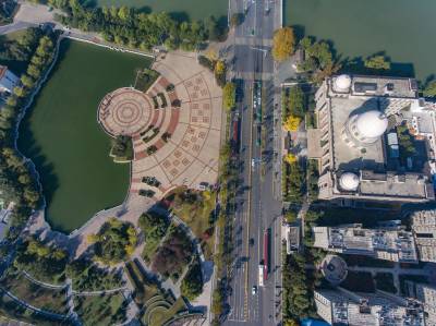 12月4日无人机拍摄的襄阳市襄城区胜利街景观大道南湖广场景观节点。