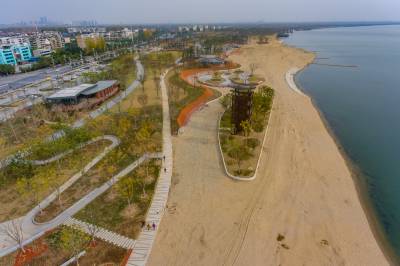 据介绍,人造沙滩是鱼梁洲环岛景观带项目“快乐水岸”的一部分。鱼梁洲环岛景观带项目建设投资8.9亿元,全长约23公里,景观工程施工总面积约265.95万平方米,规划有“快乐水岸”“鱼梁汉影”“创智之滨”“绿野迷踪”四个部分,建设成为襄阳多功能的综合性滨水公园,整体工程预计明年3月可全线完工。