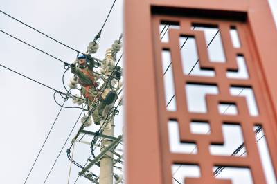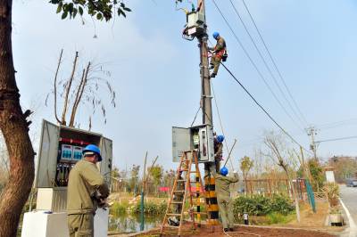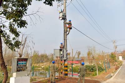 湖北沙洋:塔上“穿针引线” 消除线路隐患