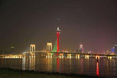 本报珠海讯(通讯员孟庆虎 邱 恒)12月22日晚9时,澳门、珠海两地首次联合举办烟花汇演活动,共同庆祝澳门回归祖国20周年。16万发壮美礼花竞相绽放,与澳珠两地的璀璨灯火交织辉映,擘画了一幅生机盎然的盛世美景,深情表达了澳珠唇齿相依,守望相助,在粤港澳大湾区建设中携手奋进,共创未来的美好愿望。
