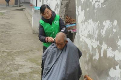另一组队友们为老人洗头、理发、剪指甲,有的陪老人拉家常,详细了解老人们的生活和健康状况,言行中透露着对老人们的关爱,一句句温暖的问候,给老人们送去了温暖,让老人感受到了来自社会的关怀,老人们的脸上都洋溢着笑容。