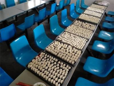 活动分两组进行,一组义工队友们坐在餐厅开始包饺子,个个动作娴熟,其乐融融,井然有序,有说有笑的边聊天边忙活着,整个福利院院内欢声笑语不断。不大功夫儿,一盘盘包含着浓浓爱心的饺子摆满了餐桌。