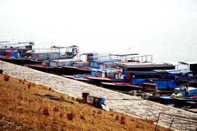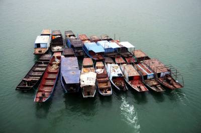 12月24日,执法人员正在清点等待销毁的渔船。当天,十堰市郧阳区渔政执法人员分4组,将登记补偿后收缴的56艘渔船拖行至城区江段管理,等待集中销毁。为切实保护郧阳区水生生物资源,根据《中华人民共和国渔业法》等规定,郧阳区政府决定对丹江口库区(郧阳区段)及堵河鳜类国家级水产种质资源保护区(叶大乡段)水域实施全面禁捕。据悉,郧阳区全面开展禁捕退捕工作第一批涉及五峰、青曲、柳陂、叶大4个乡镇,一共有250艘渔船,这些渔船在12月31日以前必须全部上岸。2020年12月31日以前,郧阳区845艘渔船必须全部上岸,实现全面禁捕退捕。(视界网 周家山 摄)