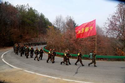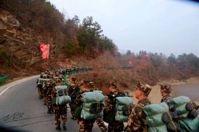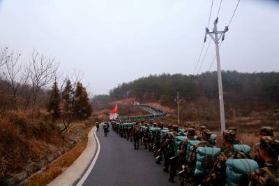 2019年12月24日,武警湖北总队十堰支队组织"00"后新兵进行入营后的首次野营拉练,参训官兵背上行囊、扬起旗帜,顶着寒风、伴着晨曦,踏上了野营拉练新征程。