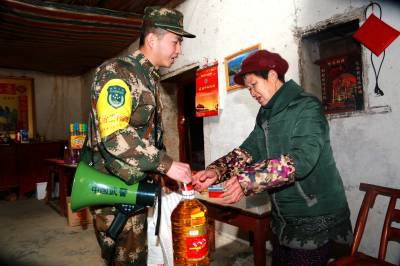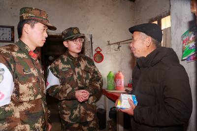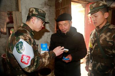 2019年12月24日,武警湖北总队十堰支队官兵带着大米、食用油等生活用品深入驻地贫困群众家中走访慰问,了解困难需求、表达节日关怀、送去新春佳节的美好祝福。支队医疗小分队官兵为当地百姓开展义诊、送医入户、免费赠药等服务。视界网薛乐生 梁骏 程林摄