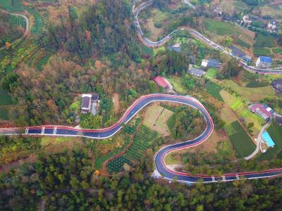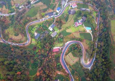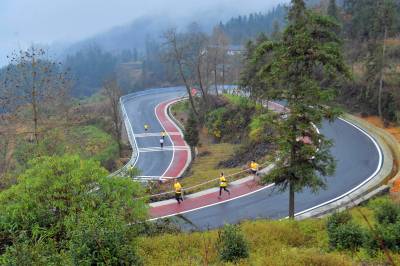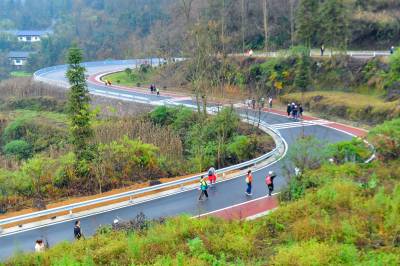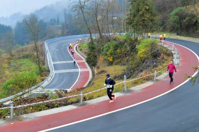 12月26日,在宣恩县蒙家湾至板寮村的乡村旅游彩色路上,长跑爱好者在参加长跑活动,喜迎新年。