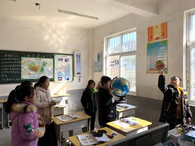 此时正值竹山县竹坪乡马安小学五年级科学课,科学教师周鹏利用废旧X光片、墨水瓶、方便被倒水再滴上几点墨水等引导学生自制观测玻片,指导学生观察日食,记录偏食位置,利用科学教具解释日食成因。