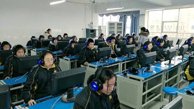 学生在班主任和英语教师组织下,分批有序地走进微机室对号入座,开始试音调音,正式测试等环节。学生们个个精神抖擞、有条不紊地参加现场测试。所有学生考试结束后,考试平台自动生成了口语测试成绩及数据汇总分析报告。