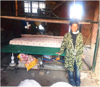 2018年11月13日清晨七点,陈小兵给行领导打来电话,说现在冬闲了,村里的乡亲们还有新棉花,想请我们帮他拉点生意,他想靠祖传的棉絮加工手艺赚点钱,改善一下三个孩子的生活,让她们过个好“年”。他的盖絮、垫絮都是自产自销,我们个人已经弹了六床棉絮,质量确实不错,价格经济实惠,棉花是按10元一斤,另按40元/每床收点加工费。经过我们银行全体员工的朋友圈转发,并引起了当地爱心媒体的关注,在公众号上进行传播,订单纷纷而至。二个多月时间,陈小兵加工制作棉絮263床,直接赚取加工费近万元。