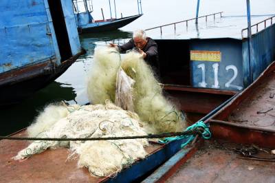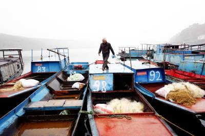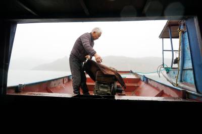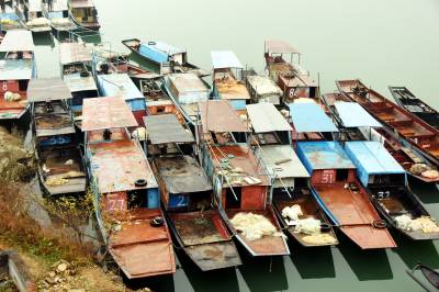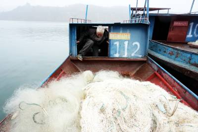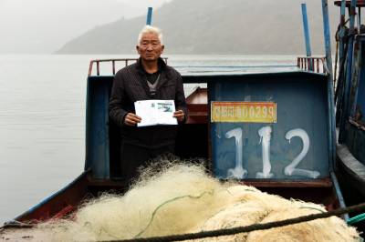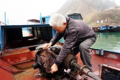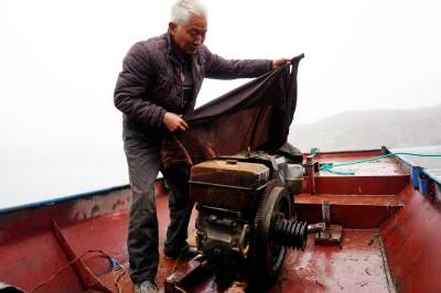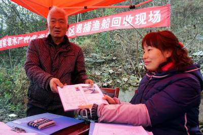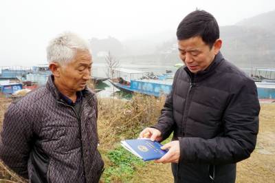 2019年12月25日,十堰市郧阳区汉江段五峰乡至辽瓦,堵河口至叶大乡堵河段设立鳜类国家级水产种质资源保护区,这天是汉江和堵河口交叉范围内的渔民上交渔船。今年63岁的韩家洲村7组渔民李广仁将自家使用多年的渔船开到指定的汉江与堵河交汇的堵河口南岸集中,老李停靠指定位置后排队等候验收,临近中午老李按要求将2付拦河漂网交出,验证后老李家的渔船被喷上112号数字,老李双手拿着国家农业部核发的<<内陆渔业船舶证书>>站在船头与自家船号鄂郧阳渔00299拍了个纪念照。临走老李找来一块布盖到发动机上,又给绑起来,老李也知道所有渔船集中拖走后会被吊上岸切割销毁,但老李还是把自家的渔船收拾干净。上岸后渔政工作人员对老李的<<内陆渔业船舶证书>>进行登记,老李家的渔船长10.20米,宽1.9米,型深0.80米,主机16.17千瓦,根据补偿政策,老李与老伴2年上岸生活补助加渔船折算补偿可以拿到85200元钱。