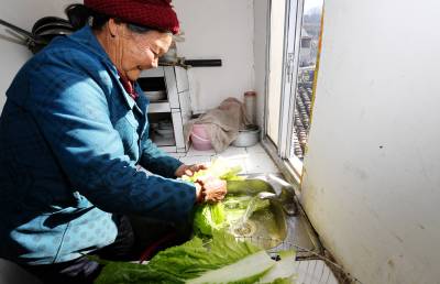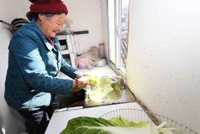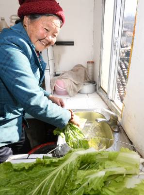 2019年12月29日,保康县歇马镇后园村二组村民汪明贵在用自来水洗菜。
