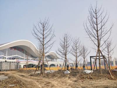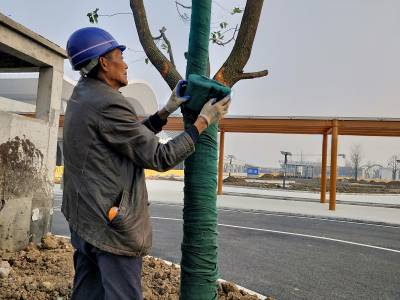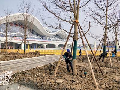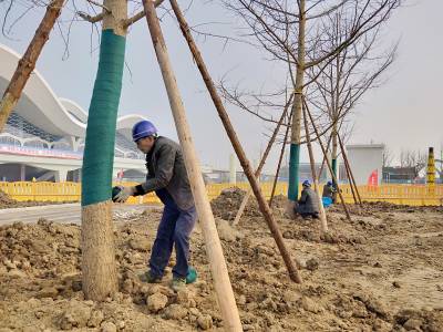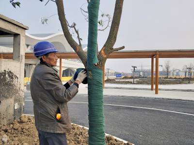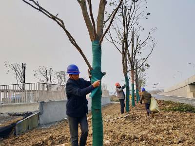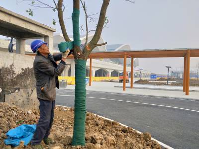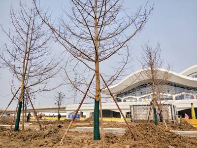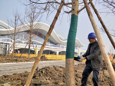 汉十高铁云梦东站广场植树穿“冬衣”保暖安全过冬