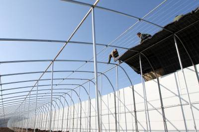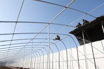 2019年12月29日,湖北十堰市房县化龙堰镇长望村正在新建滴水灌溉蔬菜大棚,该镇节水灌溉蔬菜基地达到4000亩,年均促进农民增收350万元。房县建设六大万亩灌区节水设施,对蔬菜、耳菇基地实施滴灌、微喷节水工程全覆盖,应对“十年九旱”的县情,促进农民增收。目前,全县滴水灌溉蔬菜、微喷耳菇产业受益区的农民发了节水“大财”,每年节水灌溉作物增收达到19亿元。