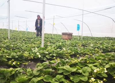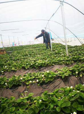 花繁果硕迎新春 2020年 1月1日,武当山特区太极湖办事处井沟村草莓种植大棚内温度控制在15度左右,去年秋天引种的丹莓二号、九九奶油草莓花繁果硕惹人醉。种植负责人李明说,“正在喷施最后一道绿色叶面营养液,20天后的春节期间就可以大批量上市了。”据了解,当前井沟村共引种草莓4亩,预计将带动周边10余户群众共同增收50余万元。下一步该村还将扩大种植规模,为发展乡村休闲采摘游培植新优势。