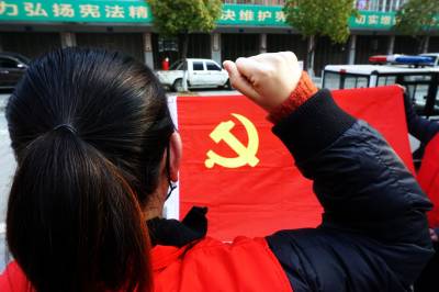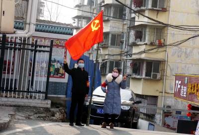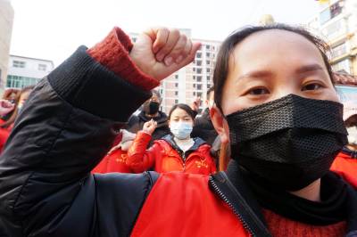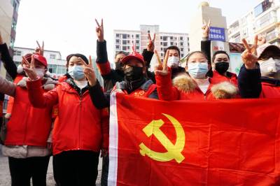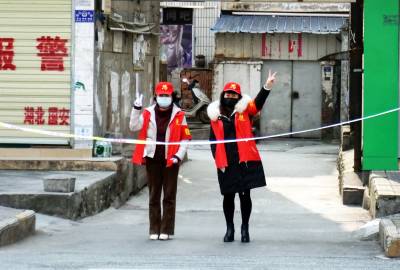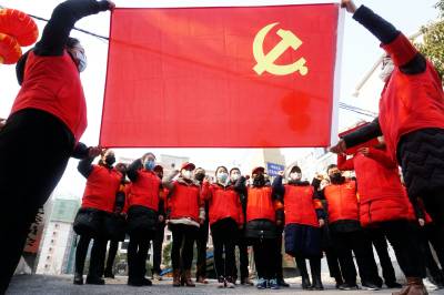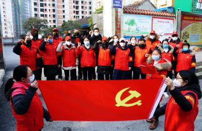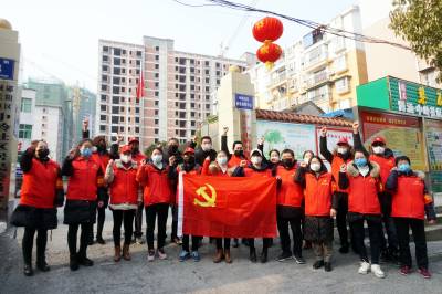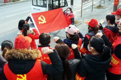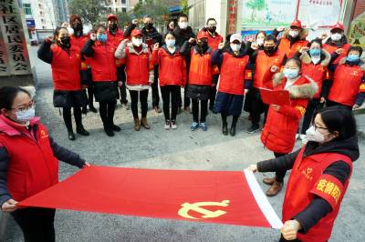 2020年2月2日是正月初九,湖北省十堰市郧阳区中岭社区的网格员们在鲜红的党旗面前庄严宣誓,坚决把守社区阻断新型冠状肺炎病毒防扩散。中岭辖区有1.5平方公里,有16家单位,6273户居民家庭,18682人。阻击战打响以来,中岭社区动员各企事业单位,机关团体,小区物业200多人设点布控看守小区,目前郧阳区每天有1000多人坚守在各个社区门口和街道。