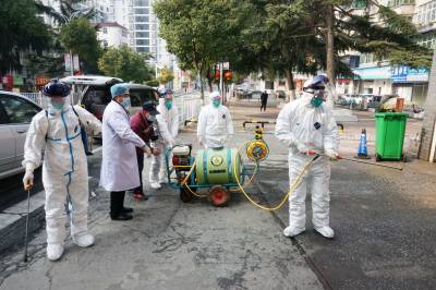 2020年2月2日是正月初九,十堰市郧阳区疾病控中心的防疫人员正在郧阳路拉圾中转站和公厕防疫消毒,回到单位换掉防护服刚要休息又接到通知到隔离病区喷洒消毒液。自阻击战打响以来5个组30多名防疫人员全天候值班,奔赴城区各个地点和20个乡镇(场)喷洒消毒,只要电话一响就是奔赴一线的战斗命令。