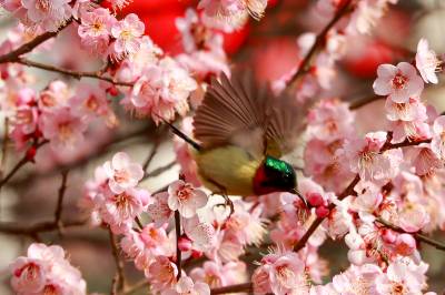 郧阳:小鸟戏花迎春分