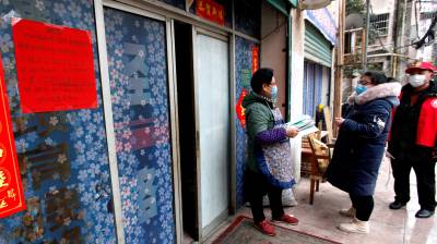 2月2日上午9时,荆州城区上空飘起小雨。沙市区凤台社区副书记胡玲、社区志愿者丁昌平早早地来到社区,准备为辖区未买到口罩的老人或孤寡老人发口罩、板蓝根。