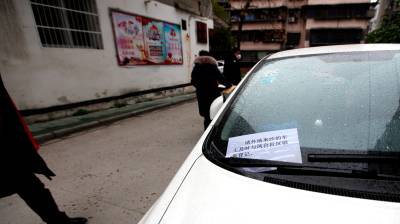 路边停着许多小车,其中外籍小车的前挡风玻璃上贴上了一张印有:“请外地来沙的车主及时与凤台社区联系登记”字样的纸张。