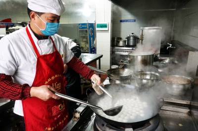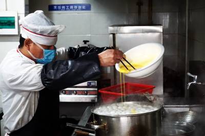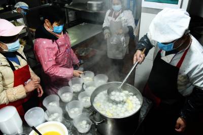 2020年2月8日是正月十五元霄节,当天上午十堰市郧阳区人民医院食堂忙着加菜和煮元霄。为让坚守在一线的医护人员和住院患者吃上元霄,医院食堂一大早采购元霄和各种蔬菜,并按照家乡的做法在煮元霄时加进甜米酒、鸡蛋花和白糖。临近中午210份元霄和饭菜送到坚守在一线的医护人员和患者手上,并用小三轮电动车将元霄和饭菜送到4家宾馆休息的医护人员手上,让他们过个不能回家的元霄节。