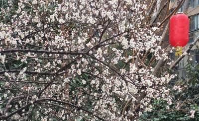 武汉市街头住宅小区梅花绽放 战"疫"之胜春天即将到来