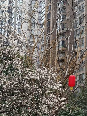 > 武汉市街头住宅小区梅花绽放 战"疫"之胜春天即将到来