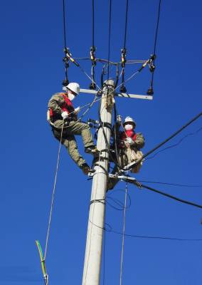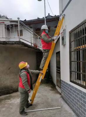 到达施工现场,召开班前会、布置安全措施、明确架设(改造)接(进)户线、安装计量装置等安装接电任务。作业现场,水泥电杆湿滑,队员们就用毛巾缠在脚扣上,每上一步都是那么小心和艰难;在略显狭窄的楼梯里敷设电缆,大家相互礼让、身子紧贴墙壁,把更多的空间留给那些搬运床铺的人……