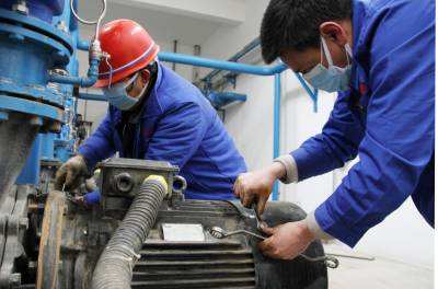 2020年2月15日,水利技术人员在房县城北水厂抢修供水水泵,保障红塔、白鹤两个镇10个村2.2万农村人口正常饮用水。房县通过实施“保设备运行、保正常供水、保水质安全、保24小时值守”的“四保”举措,驰援农村抗击新冠病毒的肺炎疫情,确保家家户户饮用卫生安全的自来水。目前,全县25家规模以水厂实现全天候、全时段供水,所有运行的农村饮水工程达到日供水规模5.71万吨,受益易地搬迁小区682个,解决了40.06万农村人口吃水难题。