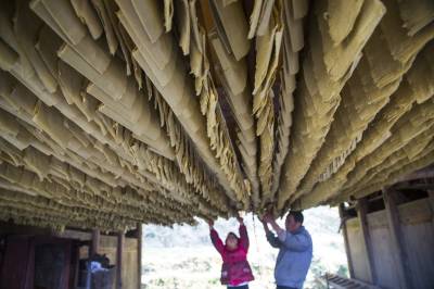 彭茂亮说,妻子袁丽香是他很好的帮手,女儿和儿子也很能干,在家的时候也经常帮助自己,但现在女儿己经出嫁了,儿子远离了故土到广东去打工去了,可能这祖上传下来的手艺,在他儿子这一辈就要失传了,但彭茂亮并不感到苦恼,本来这就是个很辛苦的手艺,孩子的未来不应该在这原始的纸坊里.