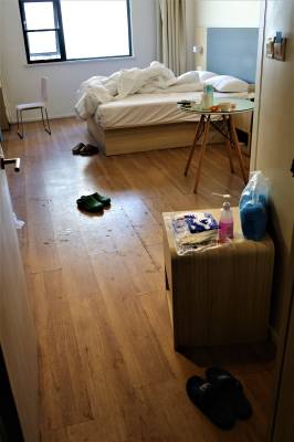 “我们回到驻地,即刻消毒‘处理’自己。”刘俊解释,他们的房间也分污染区(房门口)、污染缓冲区、半污染区和清洁区。回驻地后,脱下外套待消毒,走到房间门口脱鞋待消毒;帽子、口罩、鞋套等放入房间门口的垃圾袋里,再穿上拖鞋进半污染区(卫生间)洗漱,时长不得低于30分钟,之后换上另一双拖鞋到清洁区,上床睡觉、整理内务等。