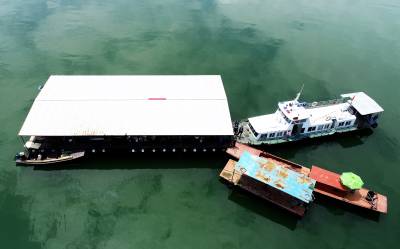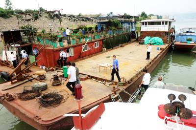 2020年6月26日至7月1日,在长江大保护,禁鱼禁钓战役中,十堰市郧阳区海事、渔政、公安、城管、电力等40多人的相关执法人员,晴天一身汗,雨天一身水,在6天起早贪黑的连续作战中,共在辖区汉江段查处扣押筏钓房17座、筏钧平台23座、三无船舶11艘、库衩内偷养网箱3个。目前己拆除三无船舶3艘、拆除筏钓房6座、拆除筏钓平台11座、以强有力的措施保护南水北调中线工程水源地生态环境和鱼类资源。