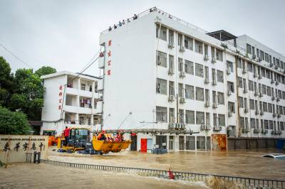 位于县城区西郊的黄梅华宁高中,师生们一大早醒来,发现1.6米深的洪水漫过校园,汹涌而过,有700余名高三学生和老师困在校内。