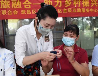 金辰还和团队骨干将她们帮扶对象制作的虎头鞋自愿拿出义卖,并将其收入三千余元全部捐给慈善机构。在武汉封城抗疫期间,金辰和她的骨干成员又为奋战一线的医务人员和志愿者赠送汉绣作品260余件。