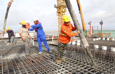 本报珠海讯(通讯员 孟庆虎 胥宇豪) 7月10日,随着最后一车混凝土浇筑,金海大桥26号主塔墩混凝土浇筑完成。至此,由中铁大桥局承建的珠机城际铁路金海大桥首座主塔墩建成,为大桥钢梁架设奠定了良好的基础。