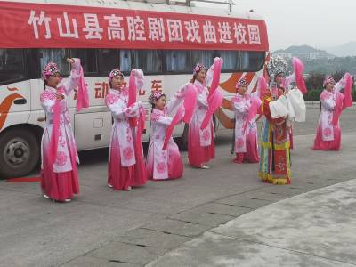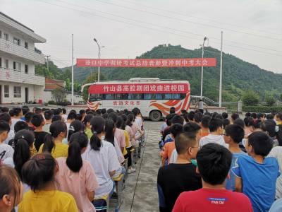7月10日,竹山县高腔剧团来到潘口乡中学,开展戏曲进校园活动,为该校七年级师生送上了一道丰盛的文化大餐。