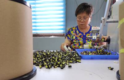 2020年7月13日,湖北十堰市房县窑淮镇观音堂沟村农民在家门口卓诚电子加工车间生产电子配件。如何保障移民、易地搬迁农民留得住、稳就业、能致富?房县拆除农民就业增收“短板”,因地因村制宜,兴办扶贫车间,发展“农字号”产业公司、专业合作社,带动农民就业,促进增收致富。目前,全县5.28万余名农民实现在扶贫车间、特色产业基地就业,年均人平收入达2.9万元。
