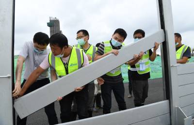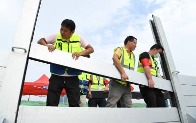 据负责施工的市政集团隧道工程公司项目经理刘迁介绍:这种新型铝合金拼装式防洪墙每档长2.5m,高2.2m。与传统老式混凝土防洪墙相比,在枯水期时可拆卸,配合各种观景平台一起整体打造让市民更方便的亲水平台,汛期又可快速拼装达到防浪防洪需求。武汉俩江四岸的防洪墙将逐步实现这种替换。