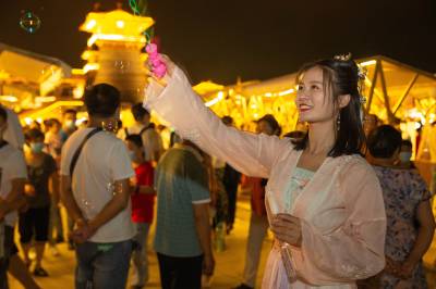7月16日,“襄城八点半”唐城市集当晚正式开市,这一以古风创意市集将进一步满足游客的购物需求,持续释放襄阳古城夜经济活力。 日前,湖北省襄阳市推出“襄城八点半”夜经济品牌活动,先后举办了“北街八点半”“檀溪夜市八点半”等。借助“襄城八点半”活动品牌,6月6日起,襄阳唐城景区恢复“盛世唐城之大唐倚梦”夜游表演项目,促进外地游客变“一日游”为“过夜游”。