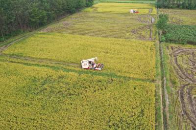 7月16日,咸安区汀泗桥镇赤岗村水稻田内,当地俊敏农机专业合作社的收割机穿梭在农田里忙着抢收早稻。受上一轮强降雨影响,该合作社受灾面积330亩,部分早稻倒伏。为减少损失,合作社赶在下一轮降雨前抢收早稻,当日可收3万余斤早稻。