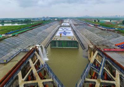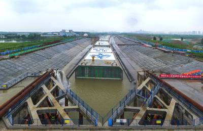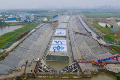 湖北襄阳:华中地区首条内河沉管隧道千米沉管注水试浮