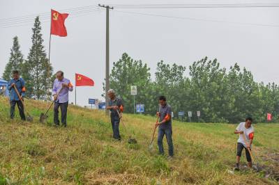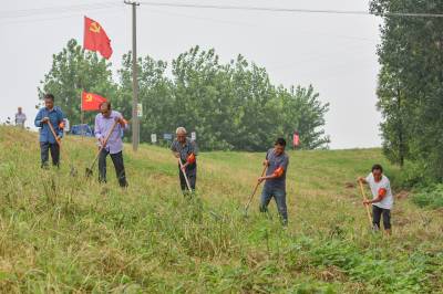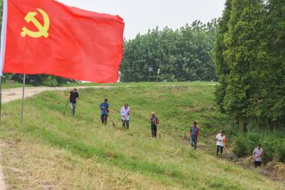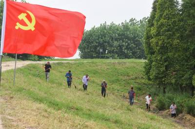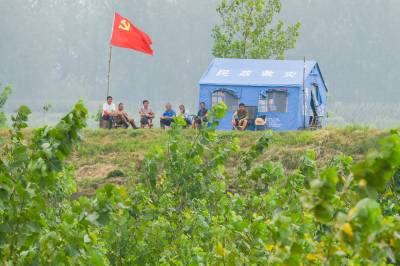 党旗在防汛一线高高飘扬