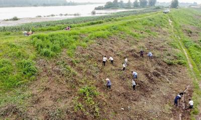 因长时间高水位浸泡,当日6时许,虎西支堤新堤段面发现散浸险情。接到抢险命令后,镇村党员群众闻汛而动,镇防指第一时间组织防汛劳力28人,采取开挖人字沟导渗的方式,于当日上午10时许成功处置险情。