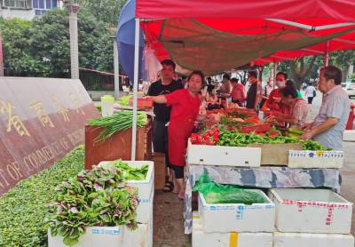 7月26日上午,武汉市江岸区江汉北路湖北省商务厅门口,一顶顶红色大棚一字摆开,这是江北市场的“临时菜场”开在了马路边。10余家个体经营户,在各自摊位摆满了新鲜的蔬菜、水果、肉类等食物,方便了附近居民们买菜,路过市民停下脚步也来凑热闹,顺便买些便宜新鲜的蔬菜带回家。7月中旬,因江北市场启动改造,湖北省商务厅、江岸区政府和区行政审批局、建设局、城管局、市场监督管理局等职能部门放下架子,主动作为,转变职能,不约而同主动亮“绿灯” ,他们迅速为这些商户申请了“占道经营”许可证。使该“临时菜场”开始在江汉北路最好的'黄金地段”经营。在占道经营期间,考虑到因市场改造,给商户们造成了不便,商户租金也全部免除了。