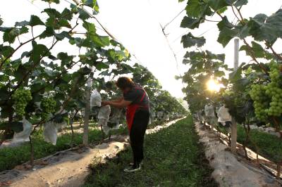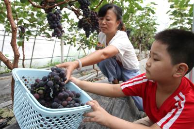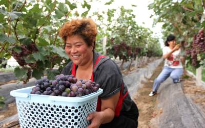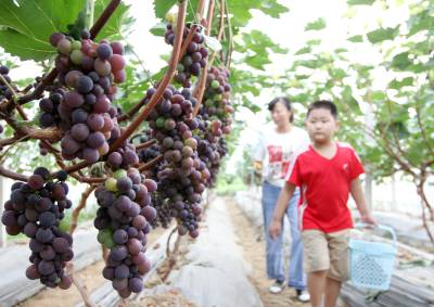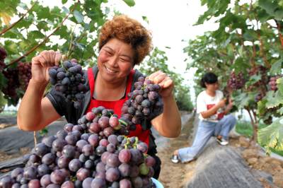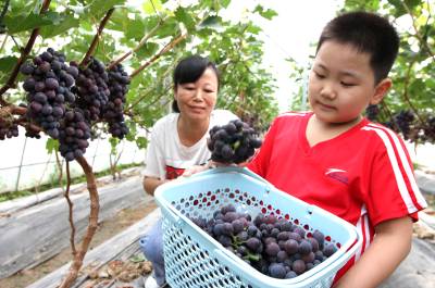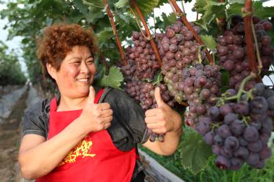 2020年7月26日,房县城关镇三海村富乐果蔬庄园入股农民王勇在采摘葡萄,当天销售葡萄1.1万元,已带动16名农民就业并实现致富脱贫梦。该庄园由李均、王勇两家农民入股投资290万元,建设葡萄园86亩。当地实施合伙投资、技术入股、土地使用权转让的模式,引导农户通过股份制、合作制或独资发展观光采摘葡萄、猕猴桃、香梨等果蔬产业园,促进农民就业增收。目前,全县建成各类果蔬产业基地134.8万亩,带动贫困农民11.8万人脱贫致富。