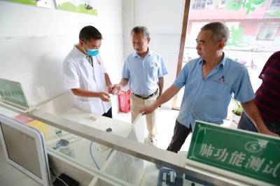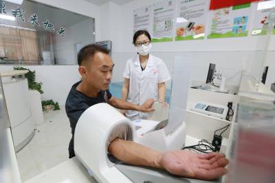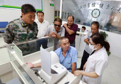 7月28日上午,在湖北省竹山县宝丰镇健康管理中心,退役军人在医务人员的耐心指导下,进行免费健康体检。八一建军节前夕,宝丰镇退役军人服务站开展“双拥共建送健康”免费体检活动,为退役军人送上一份关爱。