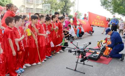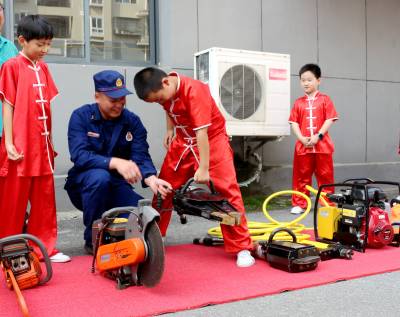 7月31日,湖北省十堰市郧阳区的小学生正在观摩了解救援器材的功能、用途。当天,郧阳区妇联、团区委等部门联合贝贝乐幼教等学校学生,走进区消防救援大队开展“慰问消防救援官兵、掌握自救技能”教育活动。现场,小学生们为消防救援指战员送上鲜花、表演文艺节目,参观了消防队员救援车辆和器材等装备,并与消防救援指导员互动演示了无人机、液压破拆工具组、机动链锯、抛投器等消防器械材的使用与操作,让小学生们在活动中学习了解消防救援知识,增强了应急自救技能。据悉,郧阳区教育等多个部门抓住暑期有利有利时机,对学生进行防灾害、防事故、防诈骗等安全教育。(陈新才、沈玲)