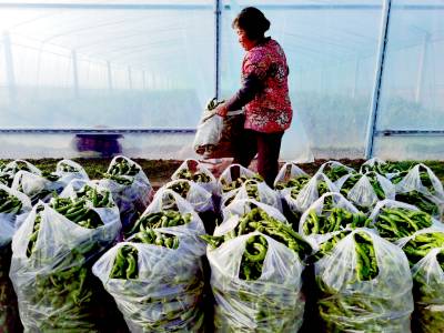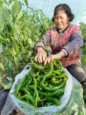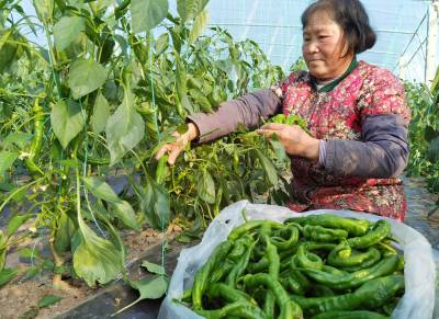 2020年12月20日,房县化龙堰镇上营村农家妇女胡玉清在骏丰生态蔬菜产业大棚采摘螺丝椒。该县破解“十年九旱”的旱情问题,因乡因村制宜,兴建微喷、滴灌节水工程,改造灌区节水设施,保障黑木耳、香菇、蔬菜产业基地用水,确保农业增效。目前,全县节水灌溉蔬菜达18.5万亩,微喷节水耳菇4600万袋,干鲜蔬菜产业年均实现收入19亿元,吸纳5.28万多名农民工在家门口就业,促进了10万农民增收致富。